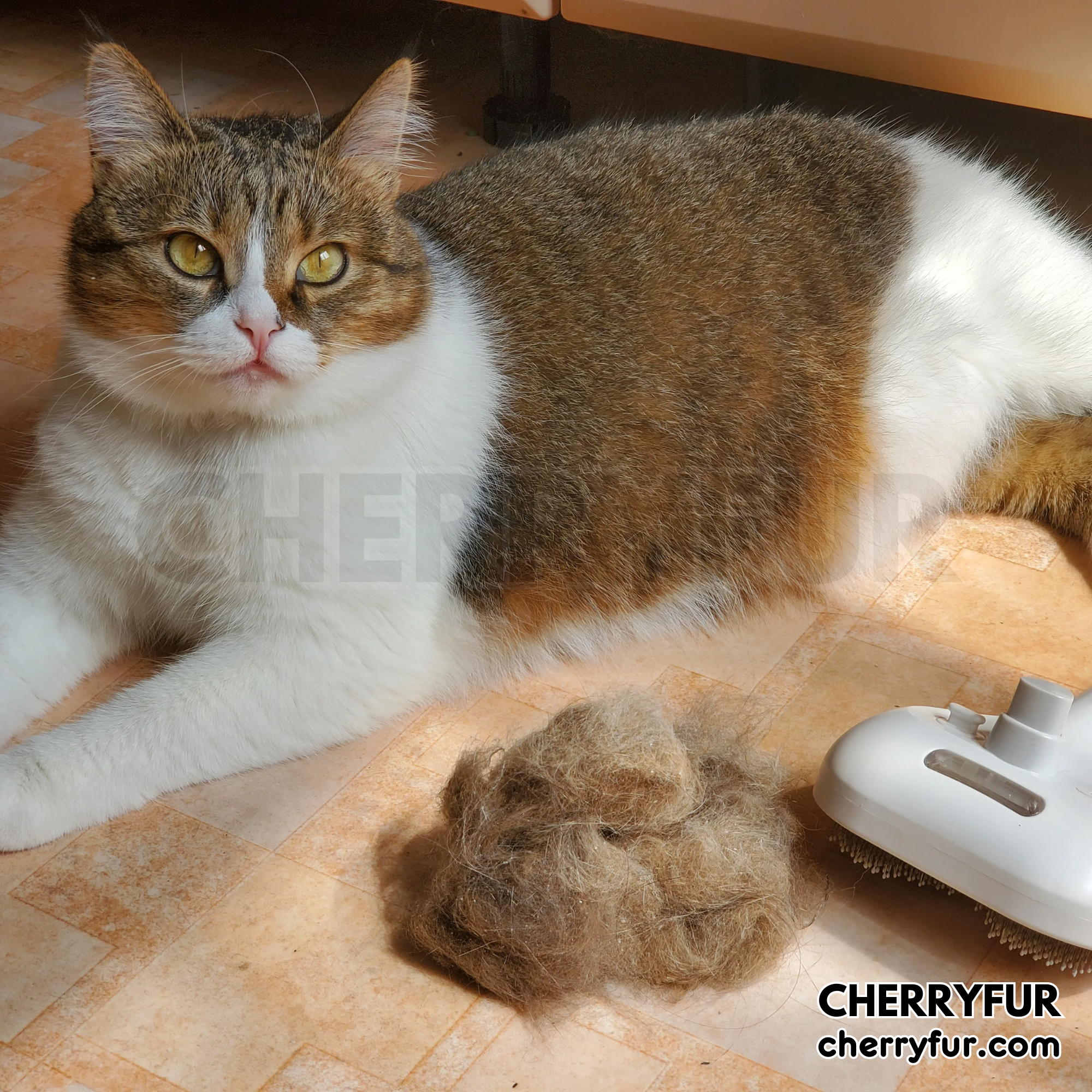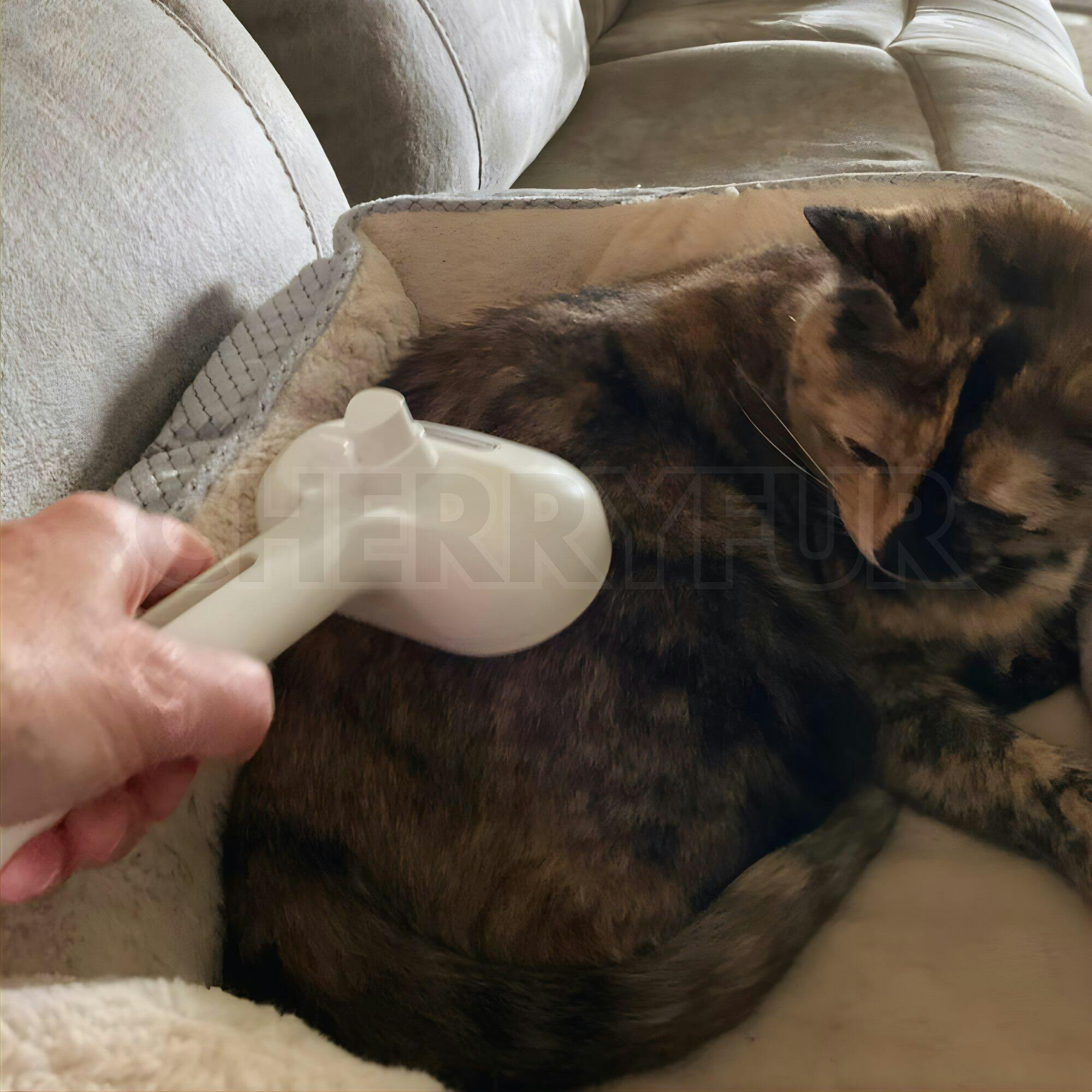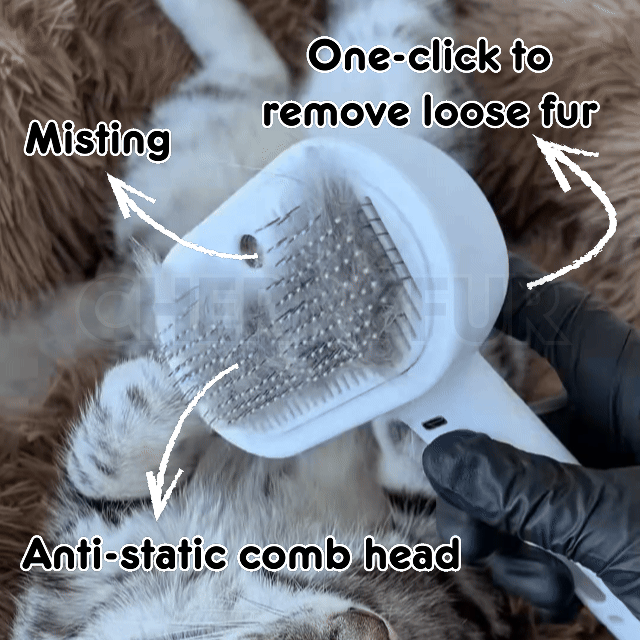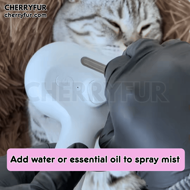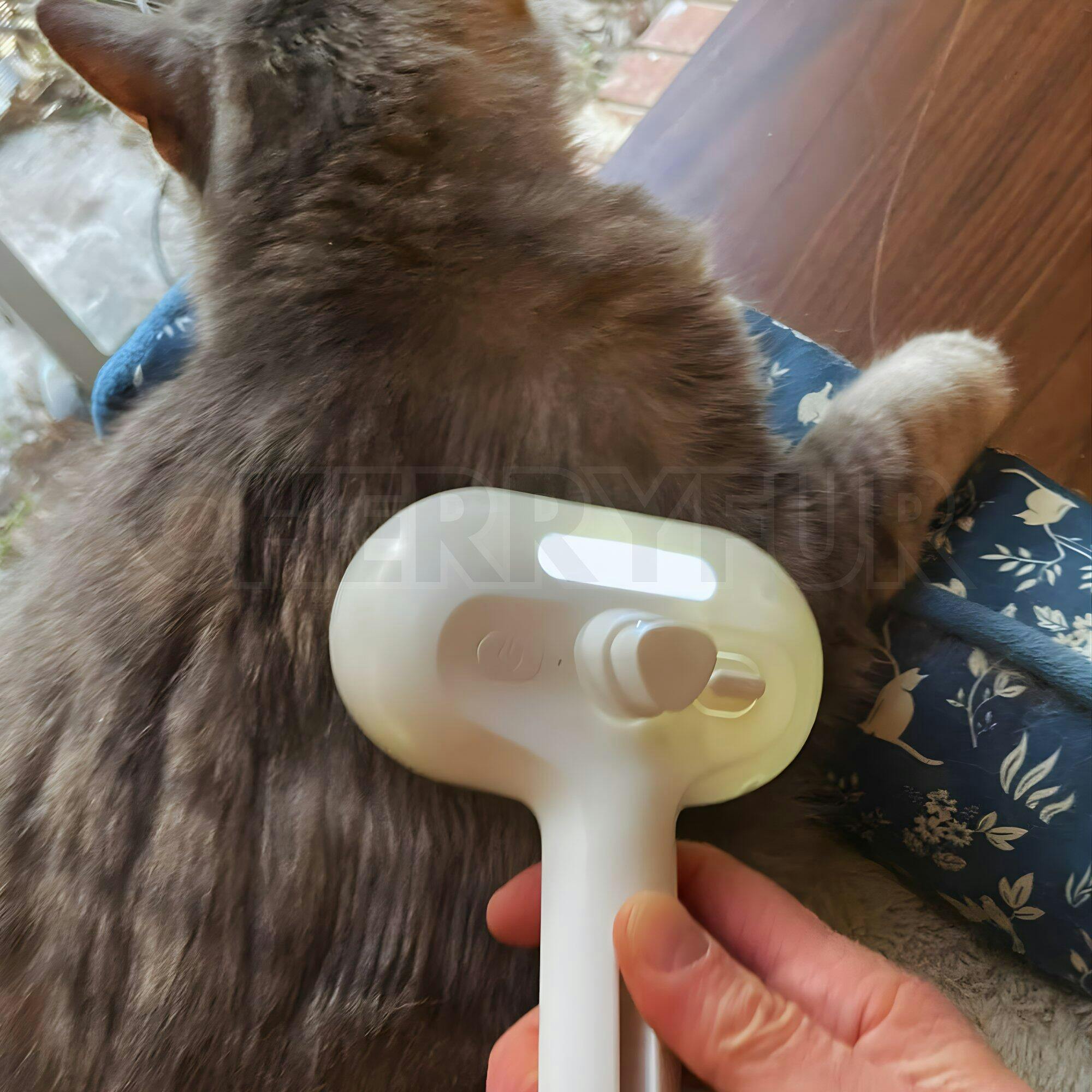 CherryFur features a built-in mist sprayer that hydrates and refreshes your cat’s fur while brushing.